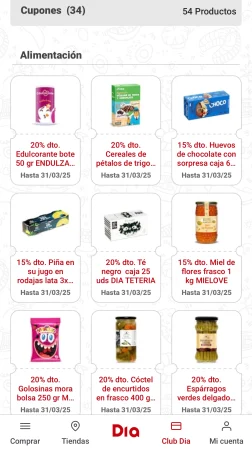 Centrándonos en Dia, una de las grandes ventajas de pertenecer al club de fidelización de la cadena española son los cupones descuentos. Con ellos el cliente puede ahorrar hasta un 50% en sus productos favoritos. Hablamos de productos favoritos, ya que Dia propone al cliente cupones descuentos personalizados y adaptados a las preferencias del cliente, es decir, en marcas que realmente sean de su interés.