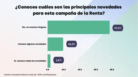 En este sentido, TaxDown, ha realizado una encuesta a más de 1.500 contribuyentes de la que se desprende que el 77% de los españoles afirman desconocer cuáles son las novedades que se han implementado este año. De hecho, solo un 3,5% de los españoles asegura conocer todos los cambios, mientras que el 19% restante afirma estar al tanto de alguno de ellos.