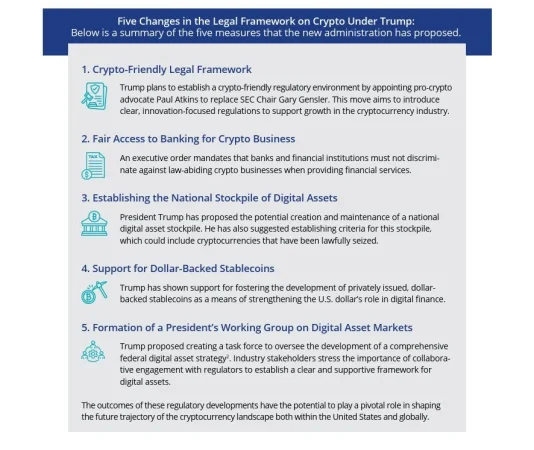 Cinco cambios en el marco legal sobre criptomonedas bajo Trump: A continuación se resumen las cinco medidas que ha propuesto la nueva administración.