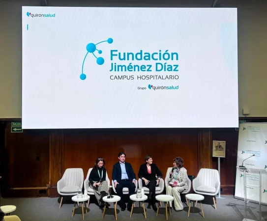 Durante la primera sesión del encuentro, Aurora Herraiz y María José Checa, directora de Responsabilidad Social Corporativa y subdirectora de Enfermería de la Fundación Jiménez Díaz, respectivamente, han moderado una sesión centrada en la relación entre cambio climático y salud. En esta intervención, el Dr. Felipe Villar, jefe asociado del Servicio de Neumología del hospital, ha subrayado que «el cambio climático afecta directamente a nuestra salud, agravando patologías respiratorias crónicas como la EPOC (enfermedad pulmonar obstructiva crónica), lo que supone un desafío creciente para los sistemas sanitarios» resaltando que, «además de su labor de protección y promoción de la salud, el sector sanitario debe asumir la responsabilidad de minimizar su propia huella climática y contribuir activamente a la sostenibilidad.»