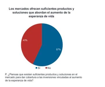 Cuando se les pregunta si actualmente existen suficientes productos y soluciones en el mercado que aborden las necesidades derivadas del aumento de la esperanza de vida, tan solo el 57% de los inversores profesionales estuvo de acuerdo.