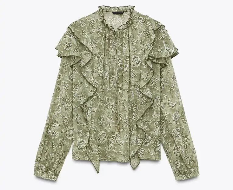 63. Blusa estampada con volantes de Zara – 27,95 euros
