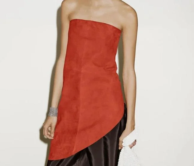 Si amas la ropa audaz, aunque pulida, esta blusa rara de piel es lo mejor. Con un color rojo sangre, esta blusa de Massimo Dutti es muy buena para crear un estilo bonito. Puedes usarlo en el día o en la noche sin problemas. La piel, casi siempre de otoño e invierno, se ve bien en la primavera. Es una de las ideas más locas de la marca hasta ahora y está marcando tendencia en todas las redes.