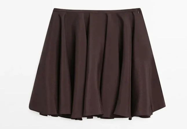 Aunque la ropa larga manda en esta moda, hay chance para la ropa más pequeña. Esta faldita de Massimo Dutti es de las pocas que sigue la onda de las minifaldas. Su color chocolate la hace más combinable, y su forma suelta la hace perfecta para verse relax y a gusto. ¿Por qué ir con Massimo Dutti?, más bien la pregunta es ¿por qué no ir?