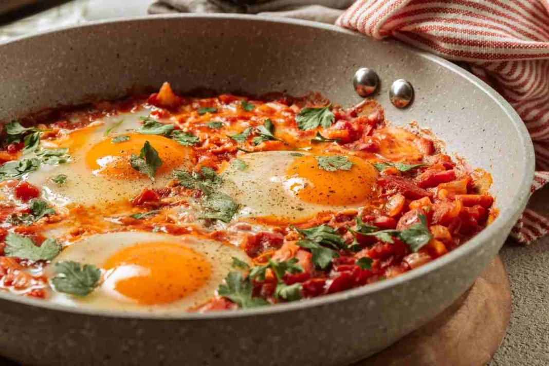 La receta se remonta a tiempos antiguos, donde las familias italianas buscaban formas sencillas y económicas de preparar comidas nutritivas. Se dice que el nombre «huevos al purgatorio» proviene de la apariencia del plato: los huevos, cocinados en una salsa de tomate rica y picante, parecen flotar en un mar rojo ardiente, evocando la imagen del purgatorio en la tradición católica. Este nombre añade un toque de misticismo y atractivo al plato, haciendo que sea no solo delicioso sino también intrigante.