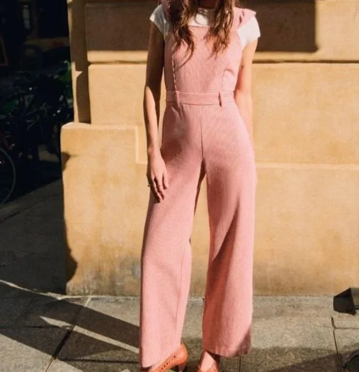 Si buscas algo con más personalidad, el peto de algodón con estampado de rayas rojas de Sézane es perfecto. Este modelo ajustado al cuerpo con trabillas para el cinturón y un escote cuadrado es una opción ideal para quienes quieren dar un toque diferente a su look primaveral. Con tirantes anchos con volantes y las perneras anchas, este peto tiene una silueta que estiliza y rejuvenece. Lo puedes encontrar en Sézane por 150 euros.