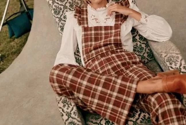 Si lo tuyo es el estilo boho chic, el peto largo estampado de cuadros en tonos marrón de Sézane será tu mejor amigo. Con tirantes con volantes cruzados en la espalda, este peto entallado al cuerpo y con perneras anchas es perfecto para complementar con una blusa romántica o una blusa boho. Lo puedes combinar con zuecos de madera, que son una de las tendencias más fuertes de la temporada. Este peto lo puedes conseguir en Sézane por 65 euros.
