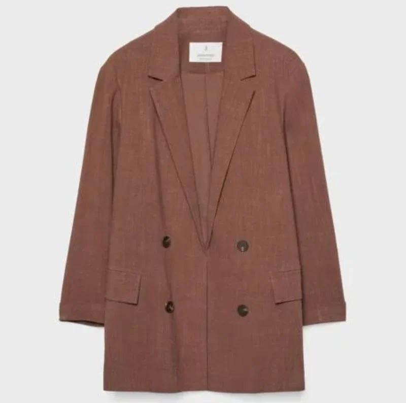 Una buena chaqueta es esencial para esos días en los que la temperatura baja un poco. Y el blazer marrón de Stradivarius con doble botonadura es una apuesta segura. Puedes combinarlo con jeans, faldas, vestidos o pantalones de lino. Un básico de entretiempo que elevará cualquier look.