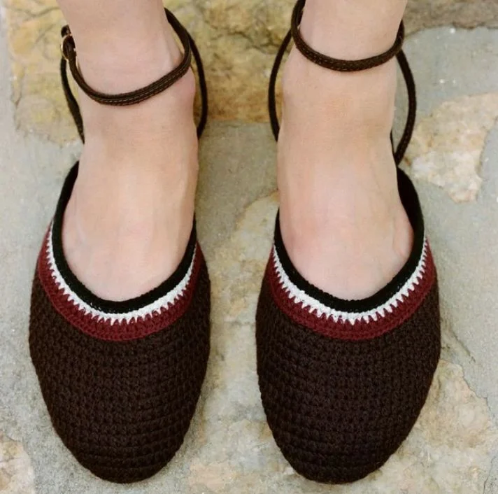 8Zapatos que enamoran a primera vista-Bailarinas tipo ganchillo: comodidad + tendencia. Bailarinas marrón chocolate en ganchillo (27,95 euros)