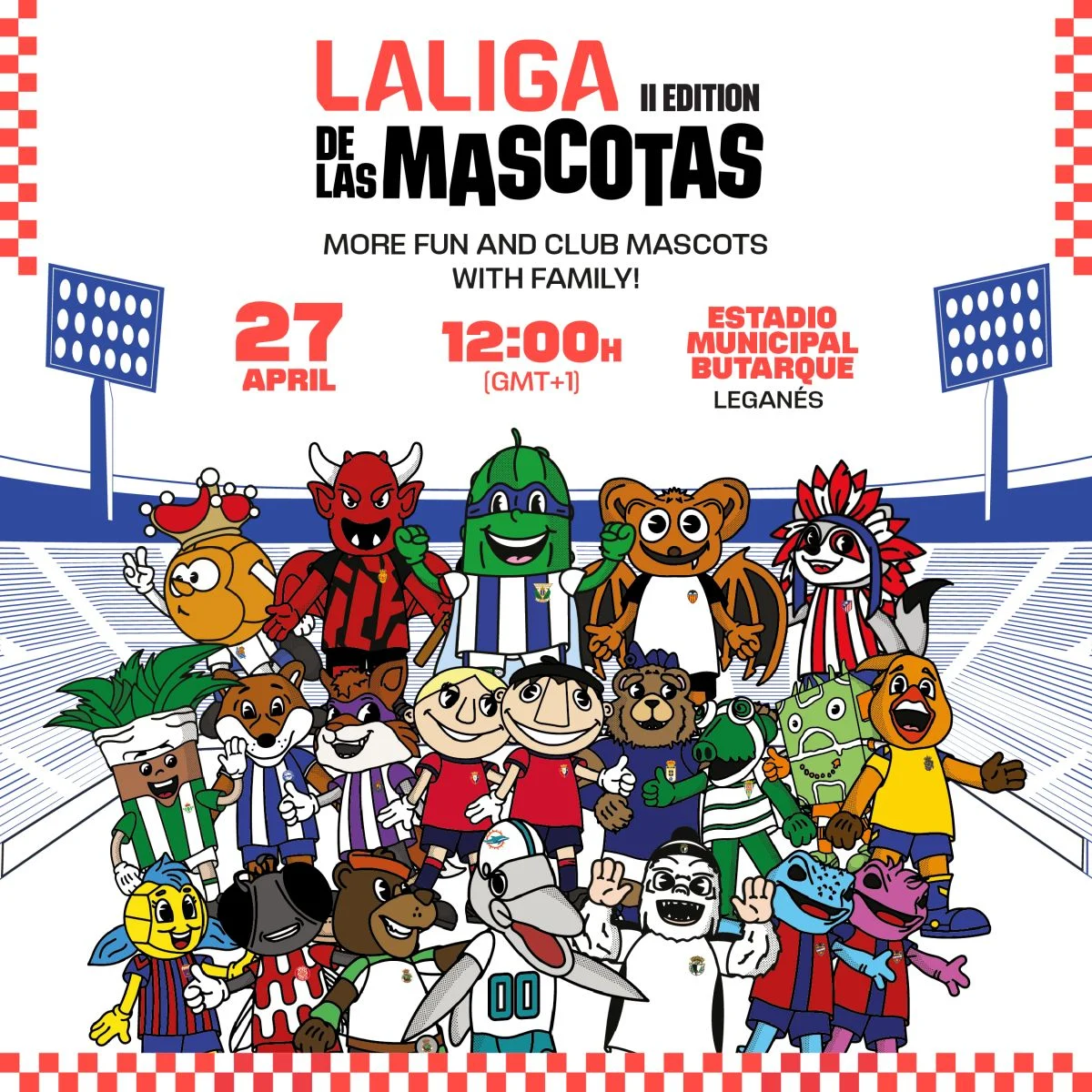 El Estadio Municipal Butarque, en Leganés, albergará este domingo 27 de abril la II LALIGA de las Mascotas, un espectáculo protagonizado por las mascotas de los equipos de LALIGA pensado para vivir el deporte en clave familiar y, por primera vez, con sabor internacional.