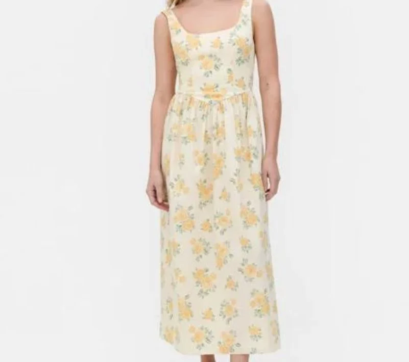 7Estampados florales: el sello de la temporada. Vestido con flores en tonos amarillos – 36 euros