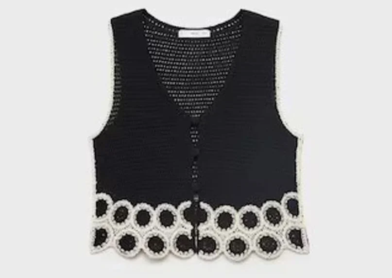 Este chaleco crochet es otro de esos básicos que siempre vienen bien tener. No importa si se trata de un evento casual, un día de oficina o incluso un festival de verano, este chaleco es versátil y fresco. Se puede combinar con casi cualquier cosa: desde pantalones de vestir hasta pantalones cortos o falditas. Su tejido de crochet le da un toque bohemio y moderno al mismo tiempo, haciéndolo perfecto para las temperaturas más cálidas.