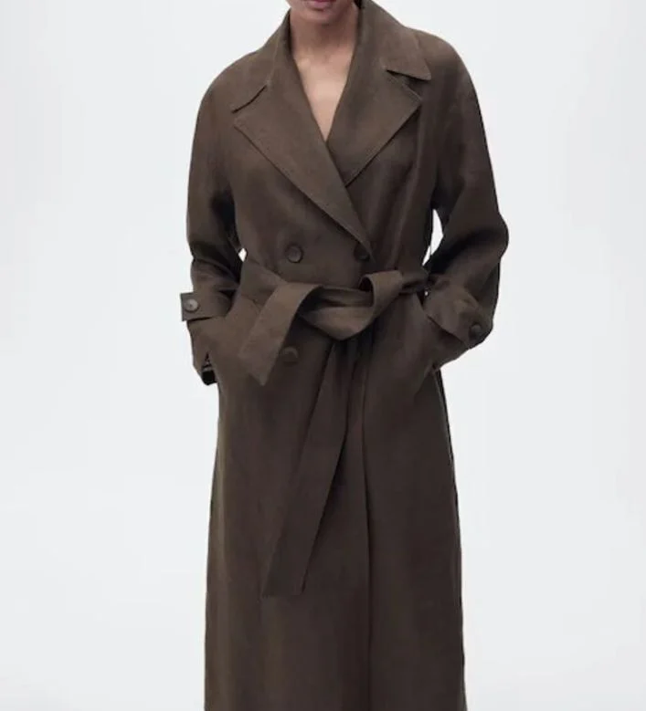 Para esos días de primavera en los que las temperaturas aún no son del todo altas, el trench de lino marrón chocolate es la prenda perfecta para mantener el estilo sin pasar calor. Este trench es perfecto para llevarlo sobre cualquier conjunto, desde un look más formal hasta algo más casual. Con su diseño elegante y teñido de marrón, este trench es el toque final que necesitas para completar tu look primaveral.
