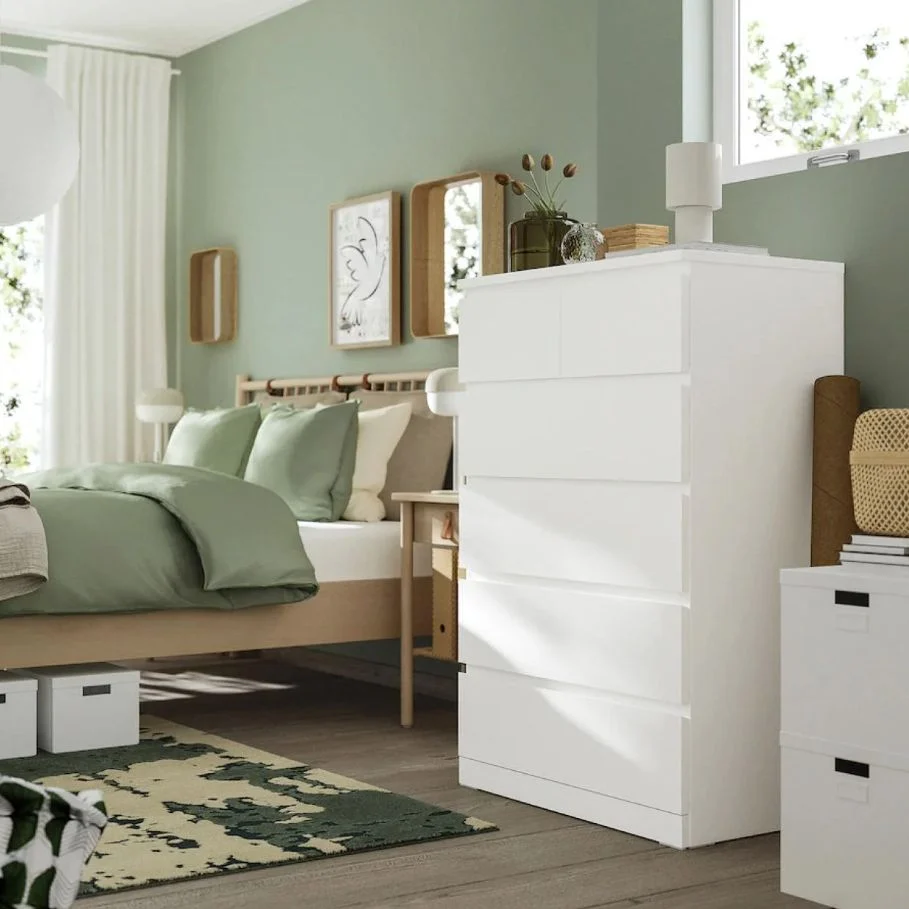 - Minimalismo funcional: el sello de IKEA. Si hay algo que caracteriza al gigante sueco, es su capacidad de ofrecer muebles bonitos, prácticos y pensados para el día a día. La cómoda MALM representa a la perfección el «estilo IKEA«, ese enfoque funcional, limpio y adaptable que tanto nos gusta.