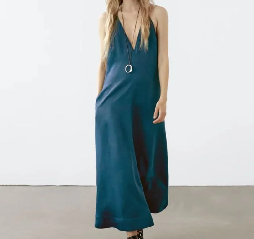 Con la llegada del buen tiempo, los after works empiezan a ser parte de nuestra rutina. Un vestido midi fluido es la prenda ideal para pasar del trabajo a una terraza después. Por 89,95 euros, puedes conseguir este vestido con escote pico, que es perfecto para dar un toque de elegancia sin perder comodidad.