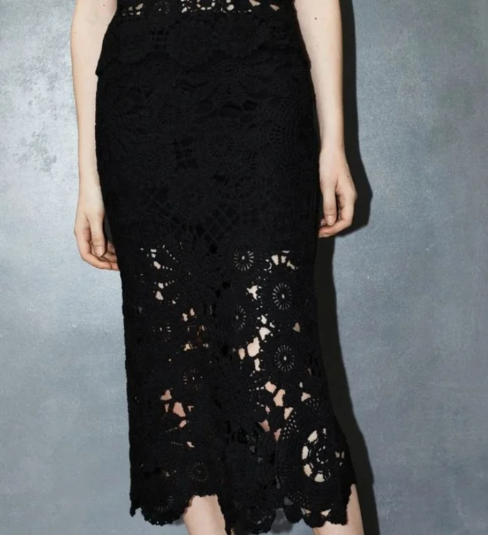Si eres fan de las faldas midi, no puedes dejar pasar la falda midi de crochet (39,99 euros) de Sfera. Este modelo negro es una de las piezas más versátiles de la colección, ya que puedes usarla tanto para un evento más formal como para un look más casual.