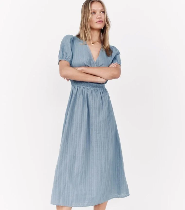 Cerramos la lista con un vestido midi que destaca por su estampado geométrico y su manga corta estilo capa, que es tanto divertido como favorecedor. Perfecto para un look casual pero con mucha personalidad.