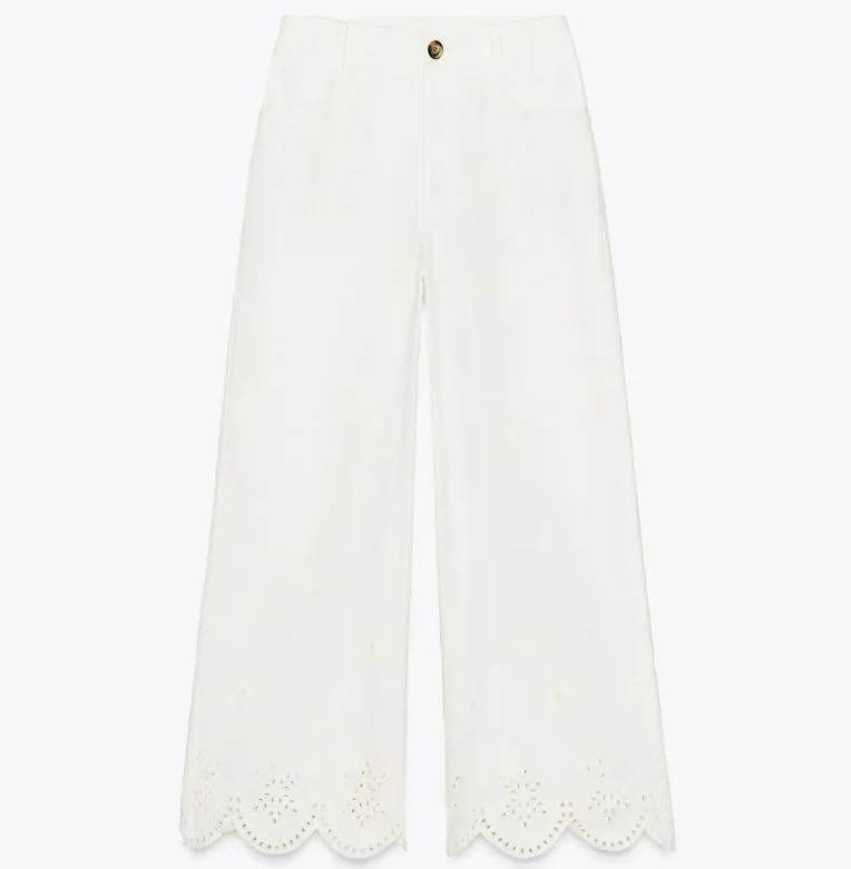 2. Estilo marinero: el estilo marinero nunca pasa de moda, y los pantalones blancos juegan un papel fundamental en este look. Zara nos presenta blusas de rayas, polos o camisetas que se pueden combinar con zapatillas blancas o mocasines. Este conjunto es perfecto tanto para un día de paseo como para una salida casual en la ciudad.
