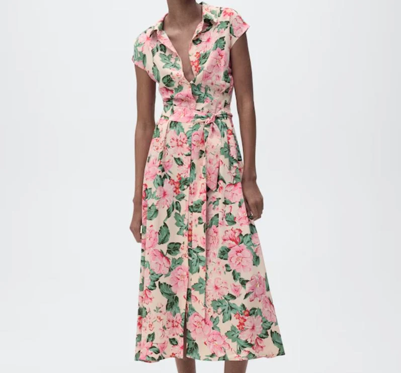 Si eres de las que prefiere un look más relajado, pero igualmente elegante, este vestido camisero de Mango es la opción perfecta. Con su corte entallado midi y el cuello asimétrico, este vestido es una de las mejores opciones para una comunión durante el día. Además, su diseño te ayuda a disimular el brazo y a crear una figura más estilizada.