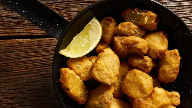 – Una vez caliente, añade los trozos de cazón al aceite. Fríelos en tandas para evitar aglomeraciones que puedan bajar la temperatura del aceite. Cocina cada lado durante unos 3-4 minutos o hasta que estén dorados.