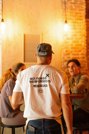Sin ir más lejos, el local de Mendrugo está ubicado en el número 13 de la conocida calle Campoamor, una zona céntrica de Madrid que se está convirtiendo en uno de los ejes gastronómicos de la capital. Uno de los detalles que más sorprende es que el establecimiento no ha sido remodelado, es decir, han aprovechado la decoración, las maderas de la barra, y la cocina, para seguir en la línea con su objetivo de ser cien por cien sostenibles.