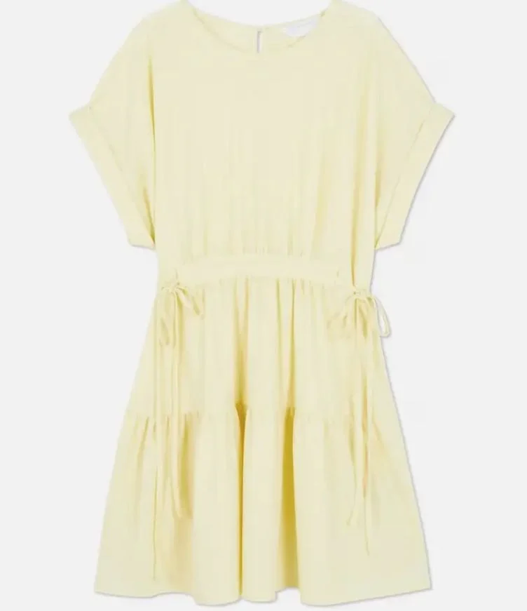 El color vainilla es uno de los tonos de moda para este verano. Este vestido corto en amarillo pastel es ideal para una piel bronceada. Es el tipo de vestido que puedes llevar tanto en un día de playa como para una cena ligera.