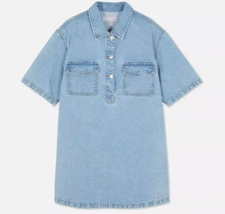 Un vestido vaquero es un imprescindible en cualquier maleta de verano. El denim es versátil y cómodo, y este vestido corto con corte recto es ideal para cualquier plan veraniego. Además, el tejido es perfecto para combinarlo con sandalias planas o botas altas.