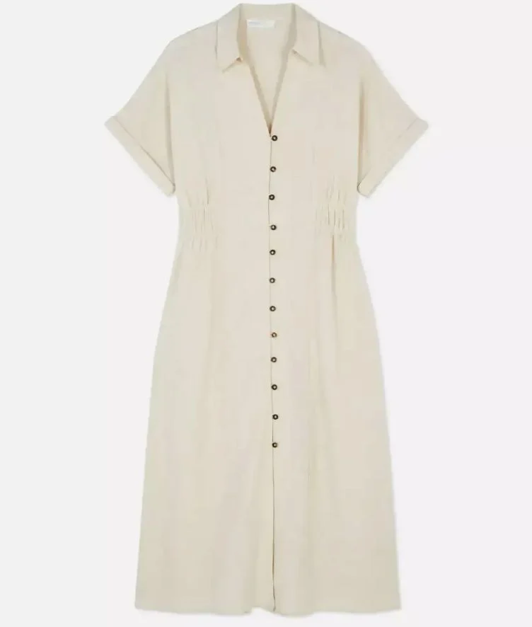 Este vestido midi camisero es perfecto tanto para un plan más relajado en la playa como para un aperitivo al sol. Con un diseño sencillo, midi y ligero, se convierte en un aliado indispensable para tu armario de verano.