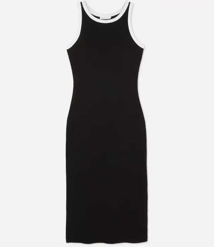 Los vestidos de punto son perfectos para el verano, y este modelo en negro es un básico que nunca falla. Su espalda nadadora le da un toque más moderno, y lo mejor es que se puede usar tanto de día como de noche.