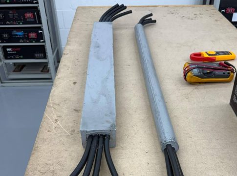 Además de su resistencia mecánica, la resina ofrece una ventaja crucial: sus propiedades conductivas térmicas permiten disipar el calor, evitando el sobrecalentamiento de los cables y garantizando un rendimiento eléctrico óptimo y apantallamiento electromagnetico.