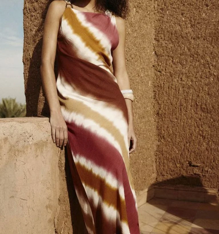 Este modelo con estampado floral o geométrico y abertura lateral se convierte en tu mejor opción si vas a moverte entre distintas actividades en Semana Santa. Puedes usarlo de día con zapatillas o sandalias, y por la noche con tacones y un bolso pequeño.