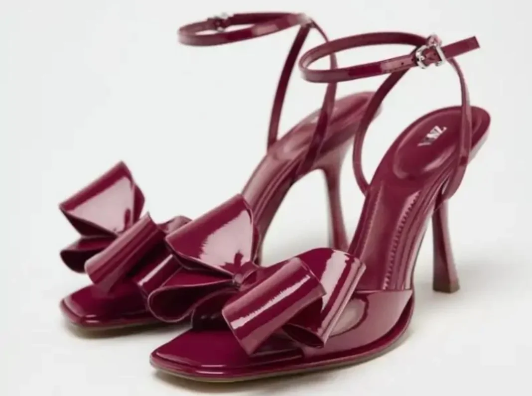 No todas las sandalias tienen que ser discretas, y estas lo confirman con estilo. Su lazo XXL, el acabado acharolado y el color frambuesa intenso las convierten en protagonistas absolutas del look.