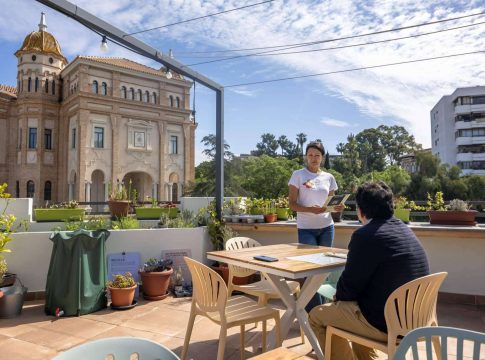 Además, cuenta con el único rooftop panorámico de la ciudad, 4 cascadas de agua, jardín y huerto propio, espacios de coworking y un área de desayuno con productos ecológicos y de cercanía. En estos espacios se realizan talleres de mindfulness, yoga, respiración o eventos grupales, todos ellos accesibles tanto para huéspedes como para visitantes locales.