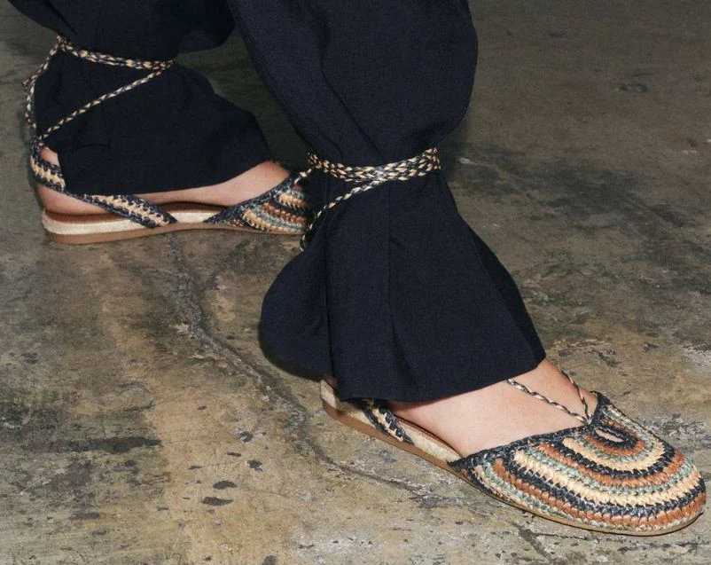 Si estás cansada de sandalias o no puedes vivir con tacones, estas bailarinas trenzadas pueden ser tu nuevo calzado favorito del verano. Con un diseño plano y con tira doble para atar al tobillo, ofrecen el equilibrio perfecto entre comodidad y estilo artesanal.