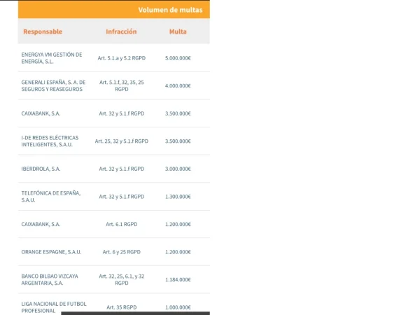 A Telefónica en el listado le siguen Orange España, el BBVA, y LaLiga con 1.200.000, 1.184.000 y 1.000.000 de euros respectivamente. Lo que sin duda sorprende es que las multadas con mayores cantidades sean precisamente grandes compañías con grandes presupuestos en materia de Gestión de Riesgo y Cumplimiento (GRC), medios y personal especializado suficiente para no vulnerar en absoluto el reglamente europeo.