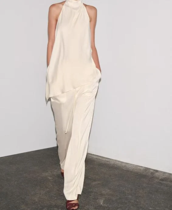 • Precio: 29,99 € + 39,99 € Este conjunto es elegancia pura con un aire minimalista. El tejido satinado le da ese brillo sutil que eleva el look sin resultar llamativo. Perfecto para eventos de noche o cenas especiales.