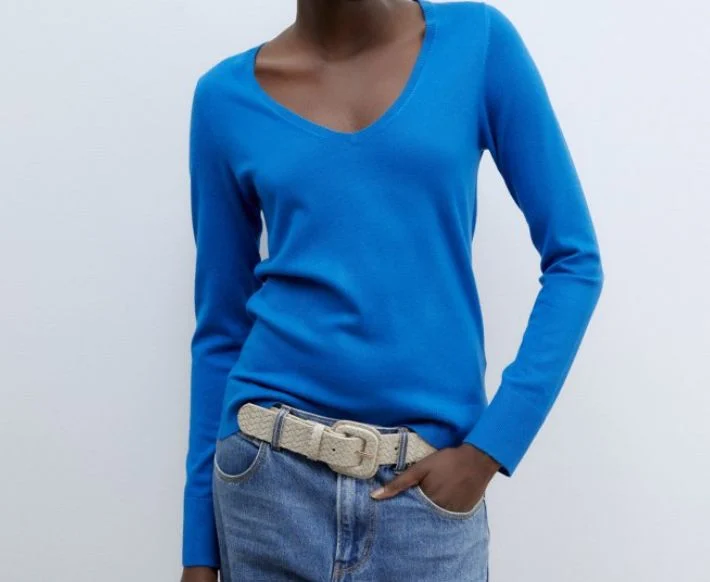 El Jersey con color azul eléctrico es la última apuesta para este momento Electric Blue será un color popular para 2025, agregando una sensación de novedad y energía a cualquier estilo. Es mejor combinar con pantalones breves, pantalones de color claro o faldas de seda.