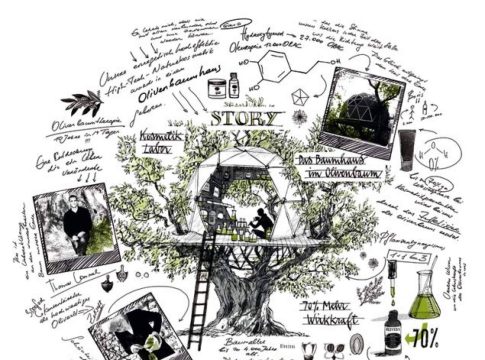 El comienzo de esta historia lo cuenta una casa en un árbol, situada entre estos magníficos olivos de montaña. Allí fue donde Thomas Lommel, fundador de Olive Tree People, desarrolló la marca de cosmética natural holística Oliveda. Sus productos altamente eficaces se basan en el poder de los olivos silvestres: en lugar del 95% de agua destilada y aceites refinados y sin vida que contienen los cosméticos convencionales, los productos Oliveda incluyen un elixir altamente antioxidante extraído de las hojas de olivos de 200 años y el aceite vital de las aceitunas Arbequina, que crecen sin ser molestadas hasta que se recogen a mano. Mucho antes de que se hiciera viral a nivel internacional, Thomas Lommel marcó tendencia con Waterless Beauty