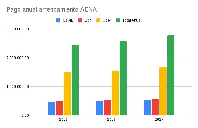 Es cierto que no todas pagan lo mismo. Cabify pagará 475.757, euros este año, 499.545 el próximo y 524.522 en 2027, para un total de 1.499.824 euros. Por su lado, Bolt invertirá 479.953 euros este año, 523.695 el próximo y 575.905 en 2027, para un total de 1.579.553 euros durante tres años. Sin embargo, ninguna se compara con lo que ha asumido pagar Uber, la empresa pagará 1.499.688 este año, 1.550.700 el próximo y finalmente 1.682.514 en 2027, alcanzando los 4.732.902 en estos tres años. No son datos menores, y explican la decisión de una AENA que ha lidiado en los últimos meses con varios problemas con los taxis del aeropuerto.