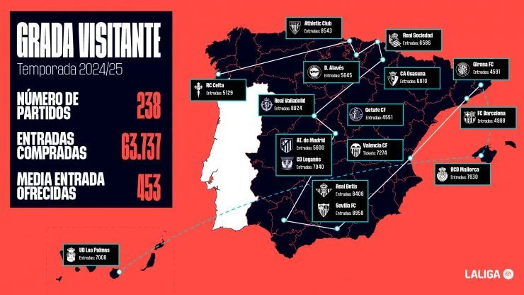 Los dos clubes con mayores ingresos de LaLiga, Real Madrid y Barcelona, supusieron casi la mitad de los ingresos totales de la competición, ciento), lo que significó un incremento de la brecha entre los equipos con mayores y menores ingresos, pasando de 15 a 19 veces respect temporada anterior. El impacto financiero de las inversiones en estadios fue destacado, con un aumento del 28 por ciento (149 millones de euros) en los ingresos de partido en toda LaLiga, alcanzando los 700 millones. La renovación del Santiago Bernabéu llevó a duplicar los ingresos por día de partido Madrid (aumento de 126 millones) y contribuyó a un incremento del 19 por ciento en los ingresos comerciales (aumento de 78 millones).