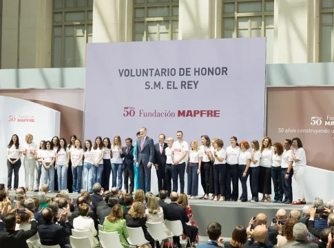Su Majestad el Rey, ha felicitado a Fundación por 50 años de historia, por su “vocación social, solidaridad, entrega y compromiso. Son infinidad de proyectos concretos, de acciones pequeñas, de manos tendidas, de gestos que han cambiado la vida a las personas”. También ha agradecido a la Fundación por su labor social, ya que “toda sociedad necesita actividad empresarial, pero tiene que hacer lo posible para tejer una red tupida de solidaridad, de acción social, de potenciar nuestro capital humano, no solo a nivel profesional, pero también en valores” y ha animado a la Fundación para “aumentar la capacidad de llegar a más personas en el futuro”. Durante la ceremonia, Fundacion MAPFRE ha nombrado a Su Majestad el Rey, ‘Voluntario de Honor’ de la entidad, momento que ha agradecido con especial ilusión, y que ha compartido con una representación de los 9.800 voluntarios que, anualmente, colaboran activamente con Fundación MAPFRE.