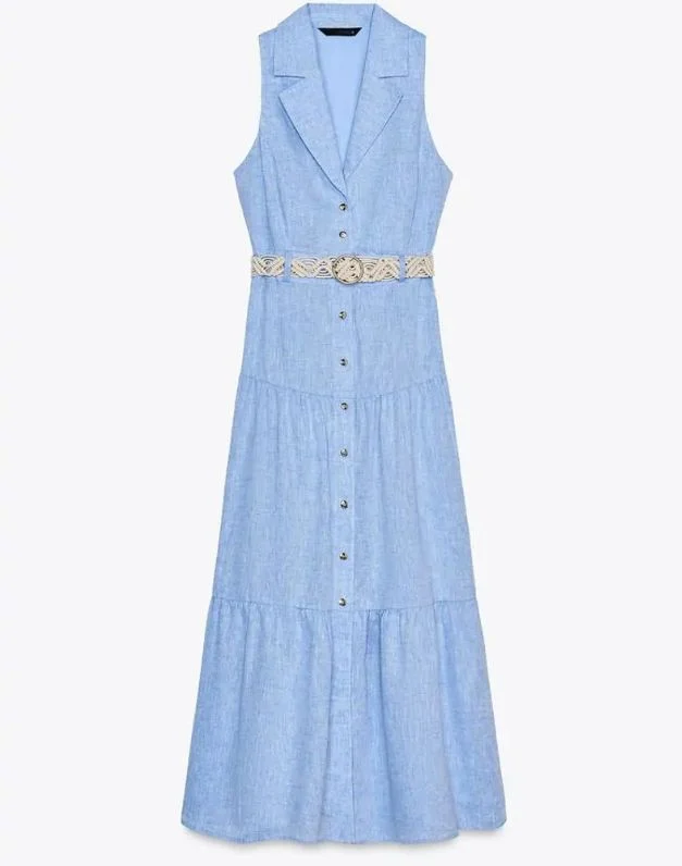 119. Vestido midi de lino azul: elegancia mediterránea