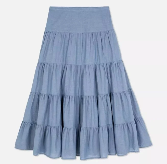 Otra pieza esencial de ropa es la falda larga que agrega variedad a la vestimenta de mezclilla. Este artículo agrega espacio y flujo, ofreciendo un ambiente nuevo y joven adecuado para salidas casuales y reuniones formales.