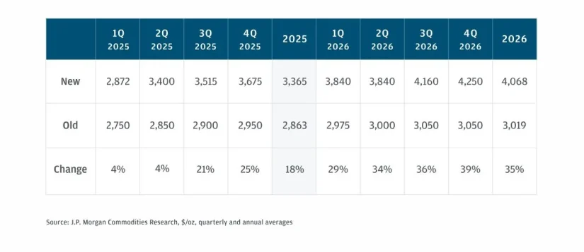 J.P. Morgan Research espera ahora que los precios alcancen una media de 3.675 $/oz en el último trimestre de 2025, y que suban hasta los 4.000 $/oz en el segundo trimestre de 2026.