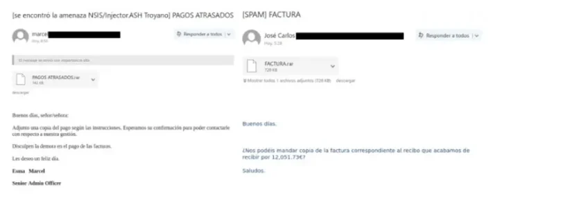 Las campañas detectadas comparten patrones comunes: los correos maliciosos simulan provenir de entidades legítimas como Iberdrola, DHL, Correos, el Banco Santander o incluso el Colegio de Registradores de la Propiedad, y contienen archivos comprimidos con ejecutables que inician la cadena de infección. Estos correos suelen imitar comunicaciones rutinarias. La última campaña que ESET España ha detectado a mediados del mes de junio utilizaba como gancho facturas pendientes, pero también hemos visto envíos de paquetería o justificantes bancarios, y, en muchos casos, se distribuyen desde cuentas corporativas legítimas previamente comprometidas.