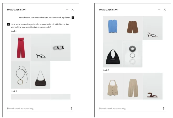 Otra iniciativa que refleja el compromiso de Mango con la innovación, apostando en la moda por experiencias híbridas que combinan la navegación tradicional con conversaciones naturales apoyadas por la inteligencia artificial. De esta forma, los clientes pueden interactuar con la moda de una manera nueva y natural, haciendo que cada compra sea una experiencia inspiradora.