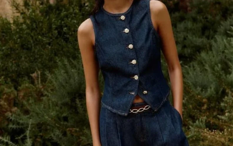 Si pensabas que los chalecos eran cosa del otoño, Zara viene a demostrarte lo contrario. Esta nueva versión en denim claro, con botones dorados y corte estructurado, es una pieza comodín. ¿La clave? Es tan versátil que la puedes combinar con pantalones vaqueros, bermudas de lino o incluso una falda fluida.
