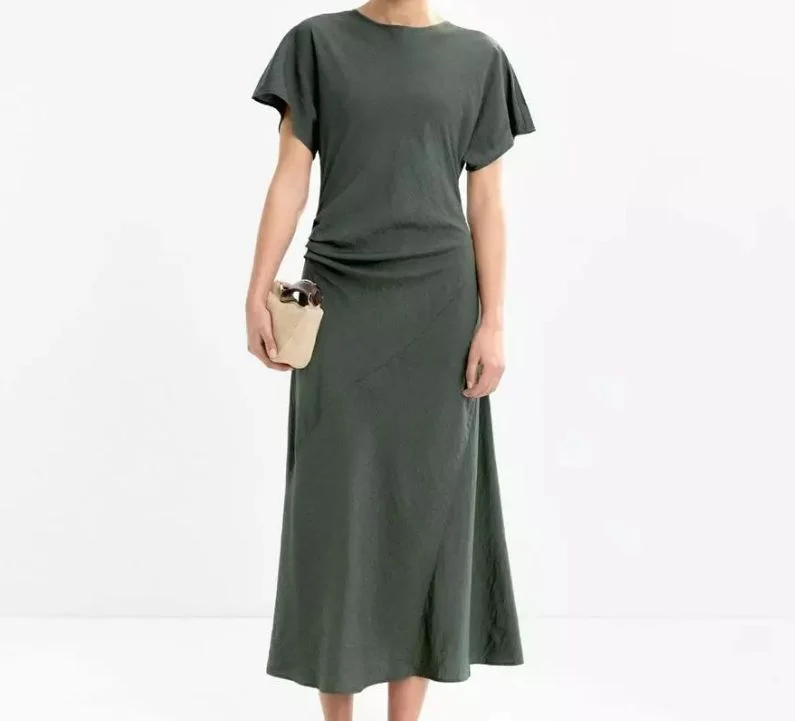 Un modelo de Parfois que combina la suavidad del tejido de punto con el efecto visual del drapeado, creando un look sofisticado pero cómodo. Perfecto para quienes buscan algo diferente, pero sin perder la esencia de un vestido favorecedor. Disponible en varias tallas, es una opción muy práctica para el día a día.