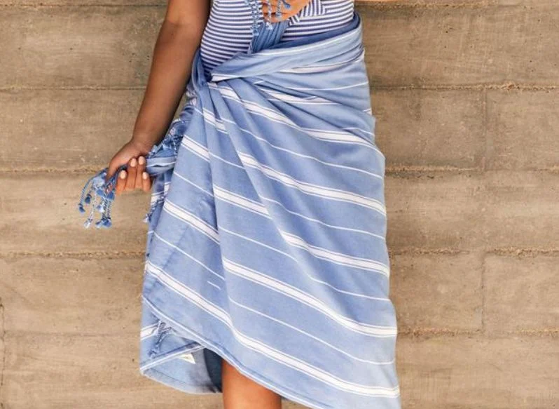 Otra prenda que destaca es el pareo de rayas con flecos, un básico de verano que puedes usar de muchas formas. Como salida de baño, como pañuelo, como falda improvisada o incluso como manta ligera para los picnics. Su diseño con tejidos combinados y flecos decorativos lo hace especialmente versátil y estiloso.