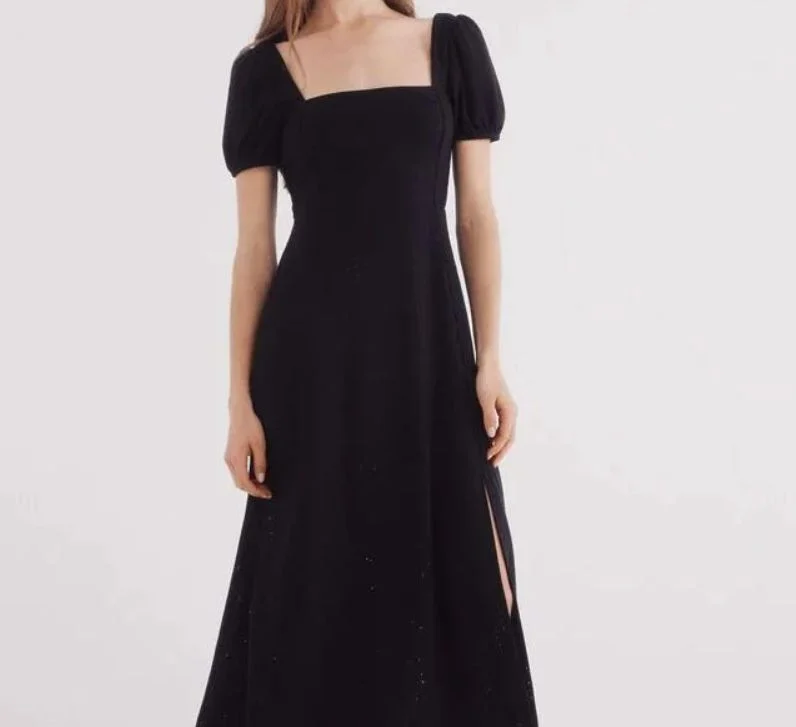 Si hay un vestido que nunca falla, es el negro de corte midi. Este modelo de Springfield tiene mangas globo, escote cuadrado y un diseño que combina elegancia con frescura.